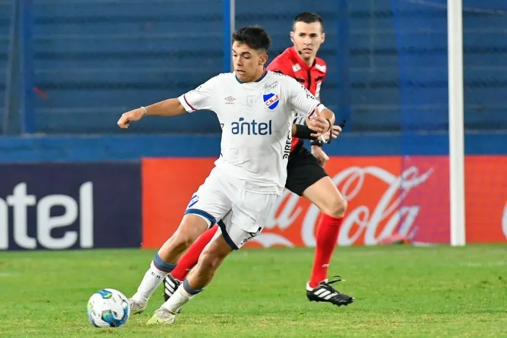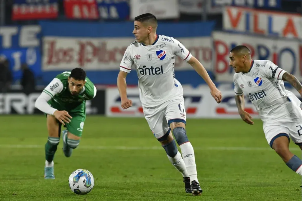 Camilo Cándido con cabeza levantada y pelota al pie; jugó con una nueva función en Nacional