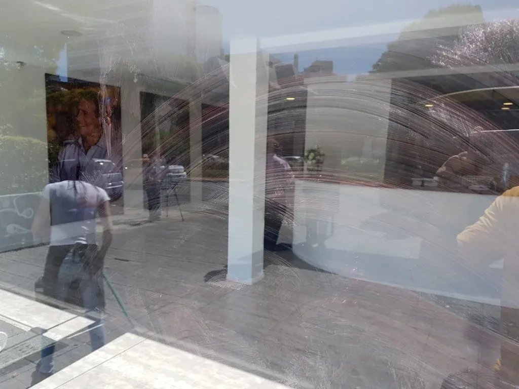 El mensaje que aparece sobre el vidrio de la fachada dice: "Facho concha tu mare" (sic).