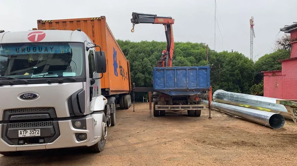 Durante la tarde se fueron descargando las columnas, como se observa en la fotografía.