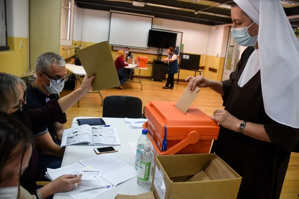 En el medio de la explicación sobre alquileres y adopciones sale una empleada de la mesa a aclarar que los sobres no se pueden cerrar con saliva, por protocolo. La fila de los que esperan para votar se va alargando cada vez más. Una mujer decide sentarse un rato por cansancio.