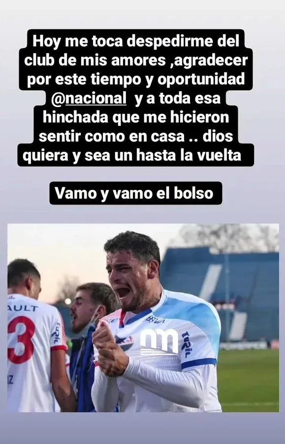 Diego Battiste Maxi Cantera “Dios quiera que sea un hasta la vuelta. Vamo y vamo el bolso”, señaló el volante, manifestando su deseo de poder regresar al club.