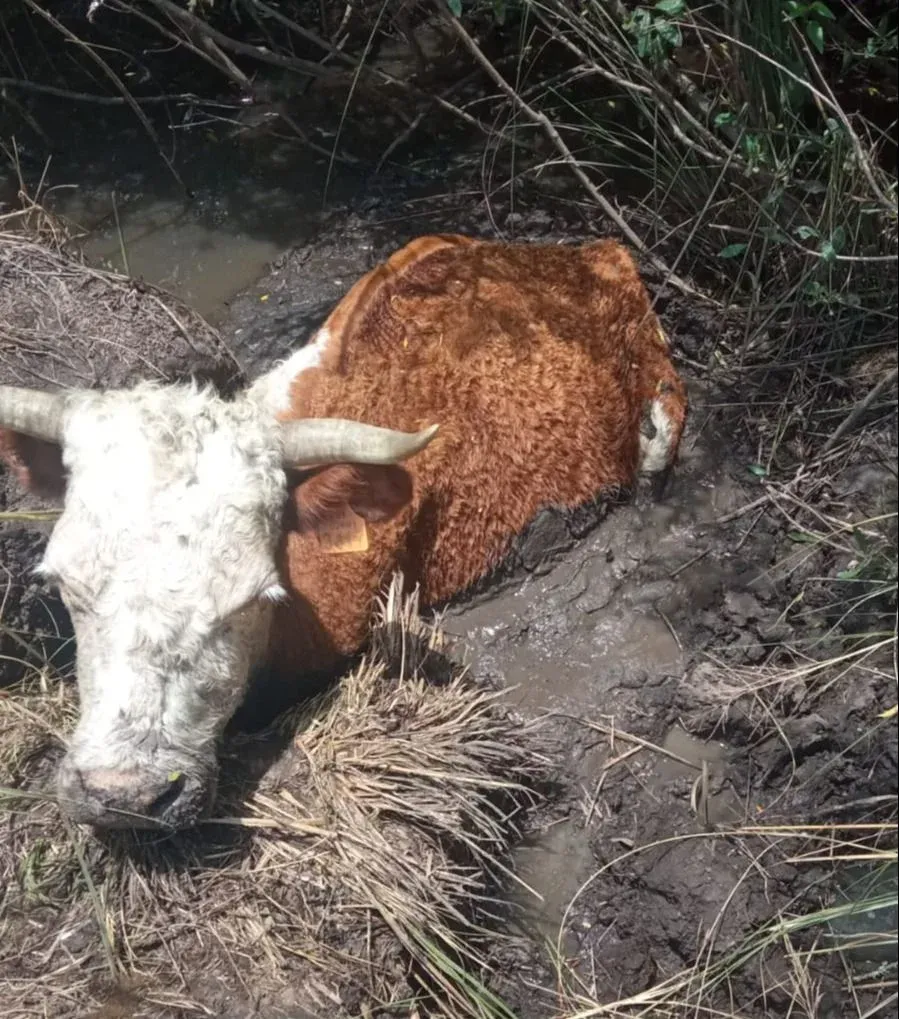 Uno de esos casos es que se incrementan los episodios en los que vacunos quedan enterrados en sitios donde el agua disminuyó notoriamente, pero queda el barro y los animales tras ingresar terminan atrapados, en una suerte de trampa natural que puede ser mortal.
