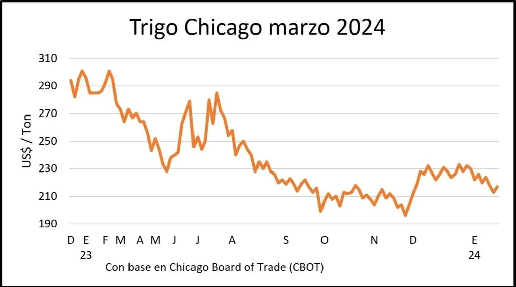 El trigo culminó la jornada del viernes con ganancias sobre los US$ 218 por tonelada para la posición marzo, pero no logró recuperar las pérdidas de la rueda del martes en Chicago.