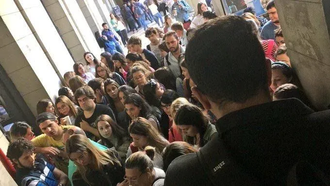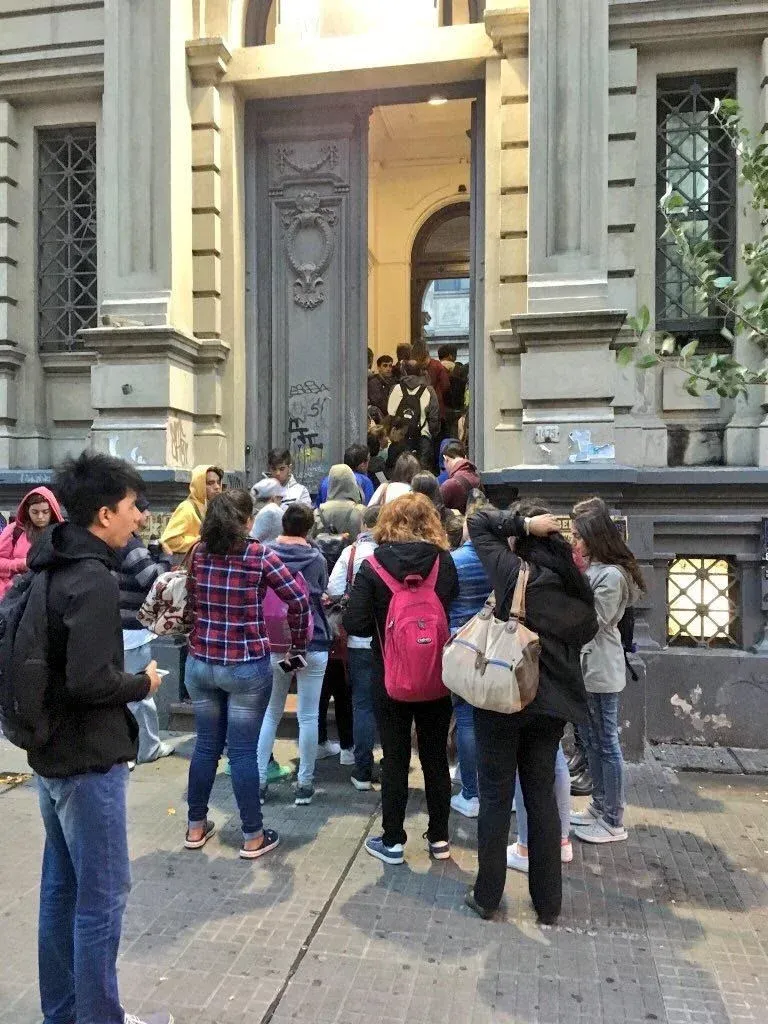"Pasa que hay muchísimo estudiantes en el piso incluso afuera de los salones, sin ver, simplemente escuchando y sacando apuntes. Ha pasado y van a seguir pasando casos de estudiantes entrando por las ventanas de los salones como locos para conseguir lugar. Incluso pasa de gurises que se vuelven para la casa porque no quieren tener clases donde no pueden entrar ni ver al profesor. Y es algo que no solo pasa en primer año. Yo hice tercero el año pasado y el salón más grande de la facultad se sobrepasó de gente", contó Riveiro quien cursa abogacía.
