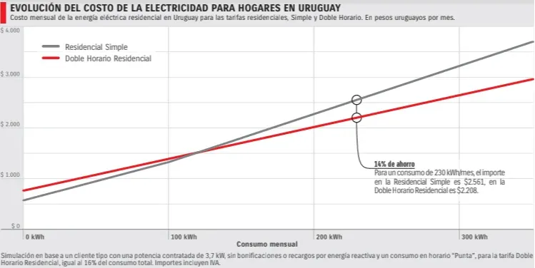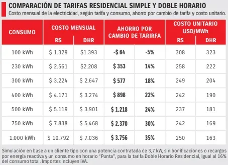 De acuerdo a SEG, considerando que el consumo promedio de los hogares en Uruguay es de 230 kWh/mes2, y que actualmente UTE no cobra ningún cargo por el cambio de tarifa, "es esperable que en el futuro la tendencia se mantenga y que muchos nuevos usuarios se beneficien con la contratación de la tarifa Doble Horario Residencial".