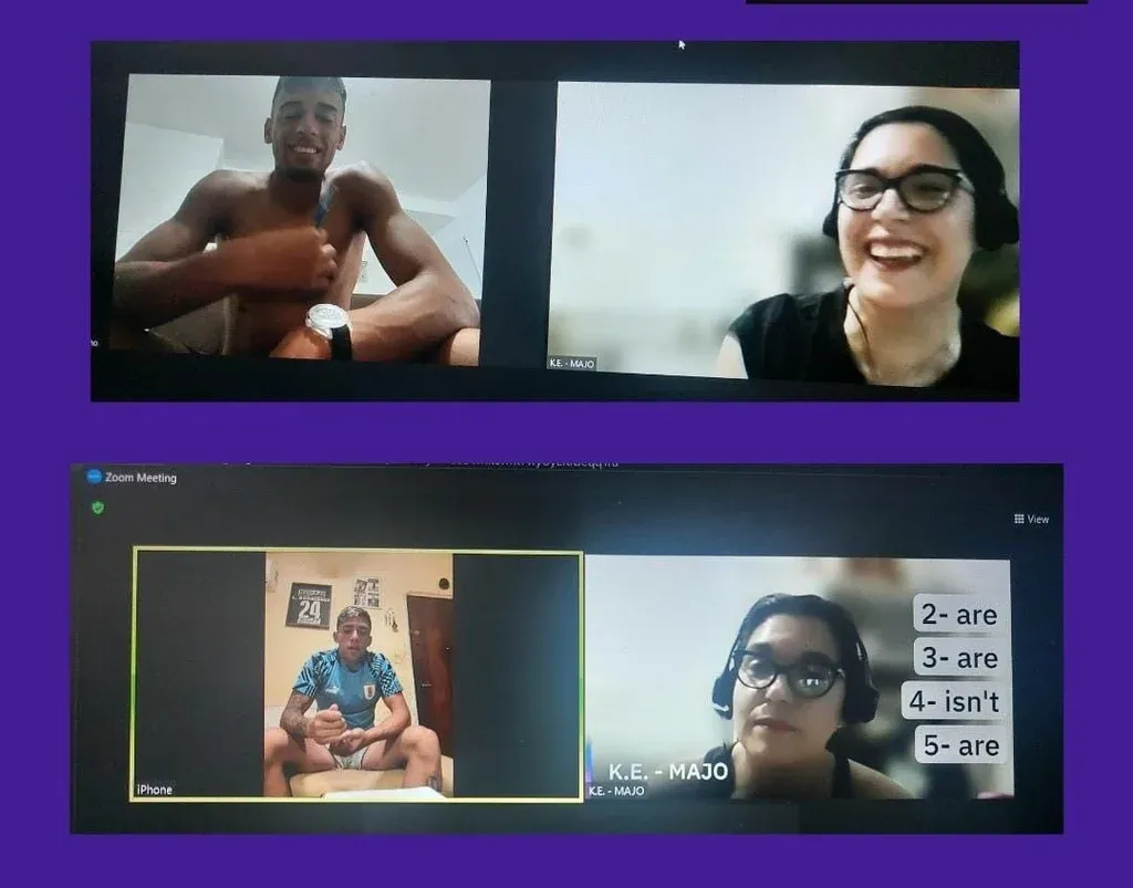 La educadora relató que el primero de los campeones en llegar a sus cursos fue Siri, en octubre del año pasado, gracias a un contacto de su representante Edgardo Lasalvia. "Es de Torque, y tiene chances de otro país, entonces quiso empezar a prepararse", contó la profesora, que da clases por Zoom a Siri, a su hermano Enzo y a Renzo Orihuela, defensa del Palermo que quiso continuar con el curso desde el exterior.