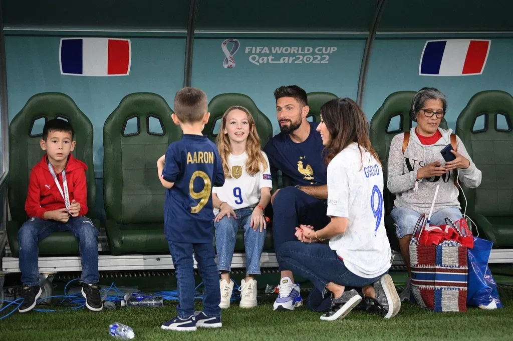 El que usó el banco de suplentes para una reunión familiar fue Olivier Giroud quien compartió un rato ameno con su esposa Jennifer y sus hijos Aria, Evans, Jade y Aaron.