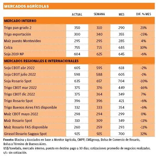 Ambos precios se mantienen cerca de los US$ 300 por tonelada para el grano uruguayo puesto en silo, en cotizaciones interesantes.