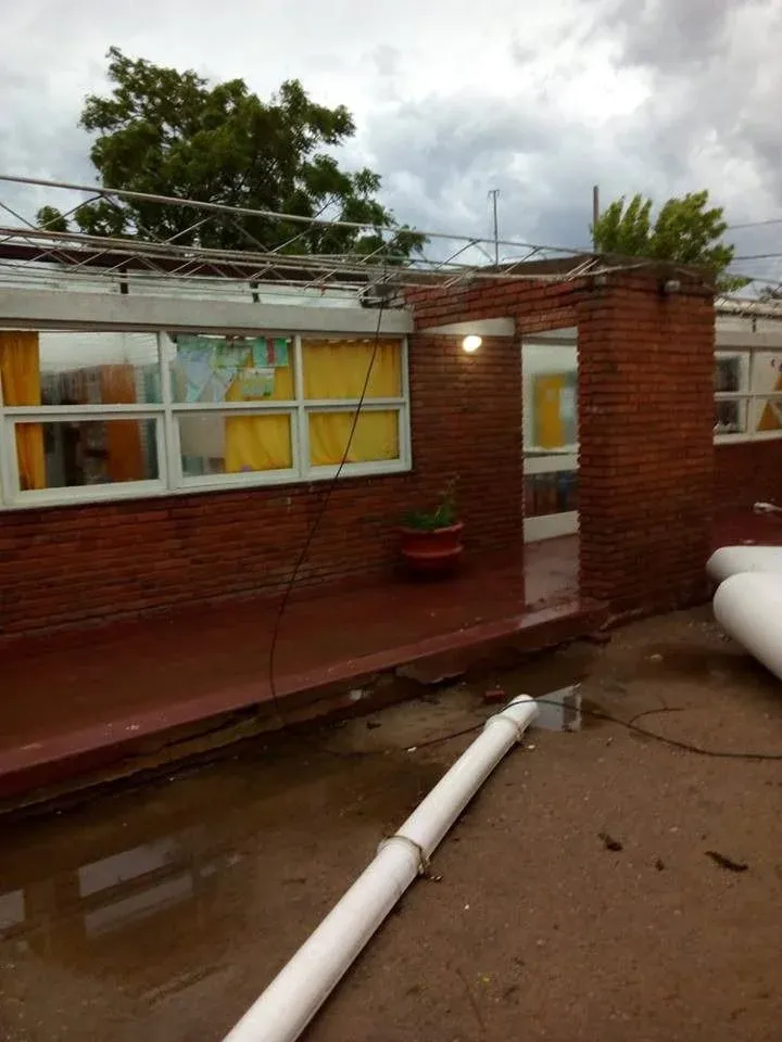 La escuela 25 de mayo de Florida se destrozó por las fuertes rachas de viento que sufrió el departamento durante la tarde del sábado. La turbonada voló el techo del centro, donde se desprendieron diez chapas que cubrían algo más de tres salones de clase. También cayeron algunos árboles próximos al edificio.