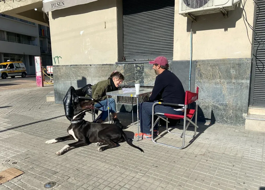 En la misma esquina un hombre canoso pasea un bulldog francés y nota algo diferente. Algo no está bien. Se detiene y le pregunta a una de las extras que está esperando la señal que le indica que tiene que empezar a caminar: "¿Qué están haciendo?". Dos de las extras que fueron citadas al set ese lunes son, también, socias productoras. Gisella Dellature es odontóloga y nunca pensó que en algún momento participaría del mundo del cine pero cuenta, antes de pasar por la carpa donde la esperan para peinarla, que sigue a Casciari “hace mil años” y, naturalmente, “todo lo que él dice es ‘sí’”. Cuando el escritor y director de Orsai propuso el proyecto, Gisella ya estaba adentro. “Es una oportunidad de aprender. Me encanta desde muy chica, pero nunca me metí en nada de esto y es como hacer un curso”, comenta, y explica que ya es la tercera vez en la que participa como extra de la película. “Siento cierto orgullo de poder ser parte de esto, una revolución".