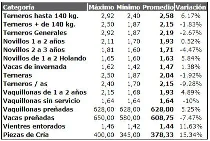 “Los terneros generales bajaron 2,6% y los terneros livianos subieron 6%”, ejemplificó.