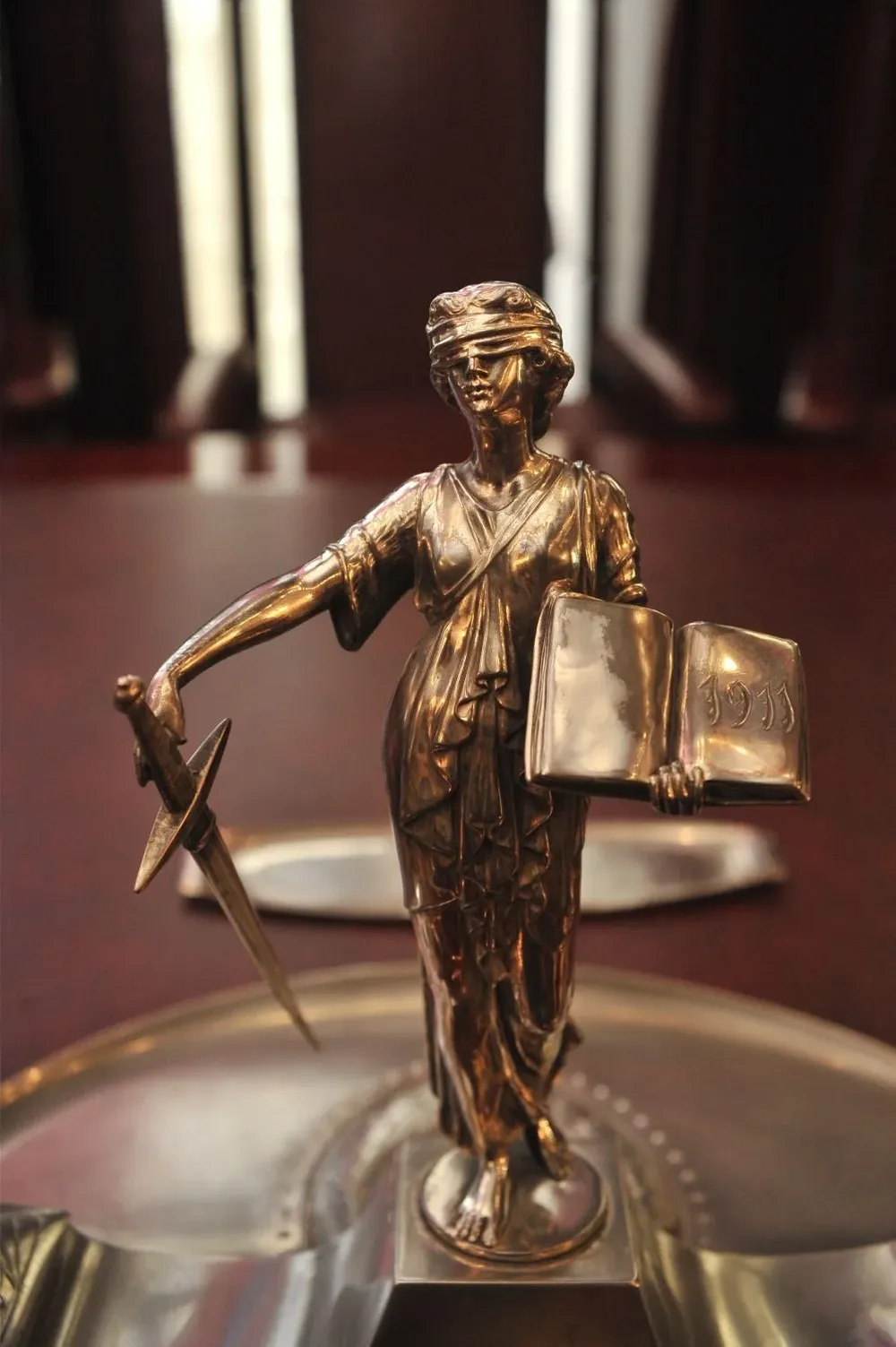 Vendada, para hacer lo que deba hacer independiente de quién se trate; con una balanza, para tener el peso de argumentos y pruebas de cada parte; y una espada para castigar a los culpables. Pero para castigar luego de un proceso con garantías, y no a los gritos.