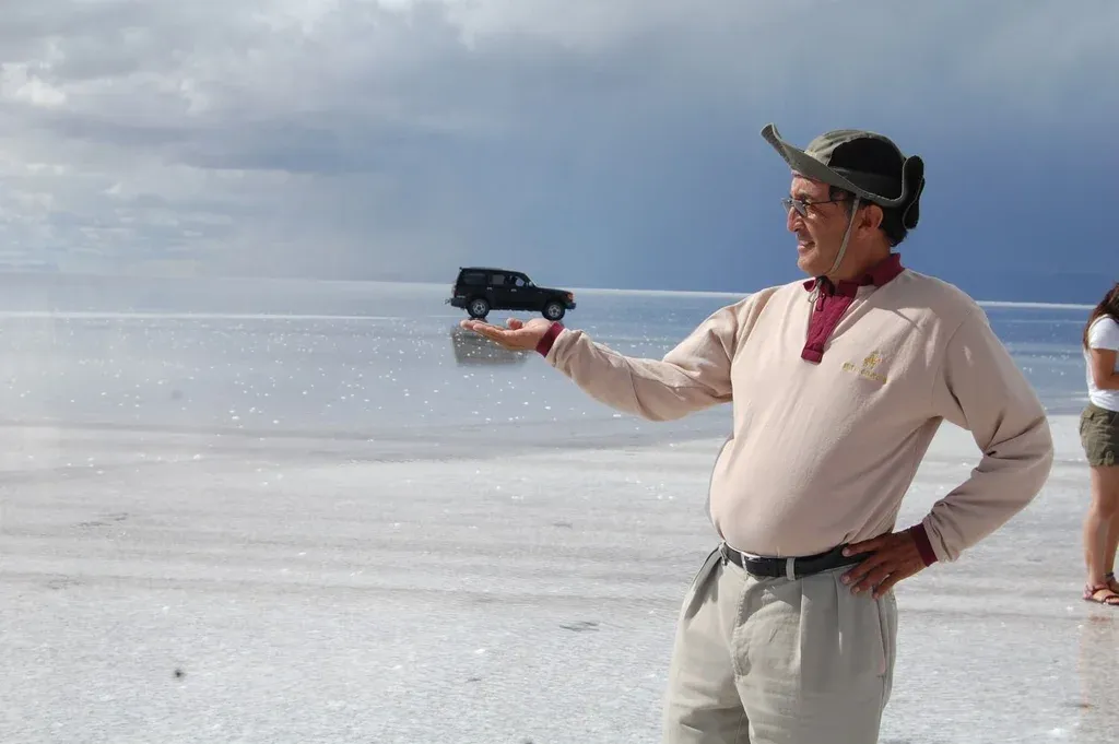 Hace poco rato terminó de llover. La delgada capa de agua aún cubre la superficie del salar y lo transforma en un espejo que refleja, de manera casi perfecta, a la mujer que camina en la blanca inmensidad sin referencias de distancia y orientación porque, a raíz de un fenómeno llamado white out, el horizonte se difumina y apenas deja distinguir el cielo de la tierra. La escena en el salar de Uyuni cautiva los sentidos. El fotógrafo, atento, la registra. Es una de las tantas increíbles imágenes que se aprecian en este fascinante rincón de Bolivia, hoy muy frecuentado por los amantes del turismo aventura.