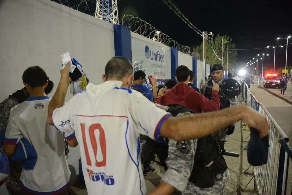 Con mucha calma, los hinchas van caminando rumbo al Ubilla por las calles de Melo. Cae el sol, se viene la noche y los aficionados de ambos equipos se acercan al estadio que ya tiene las luces prendidas y su resplandor se puede ver a lo lejos.