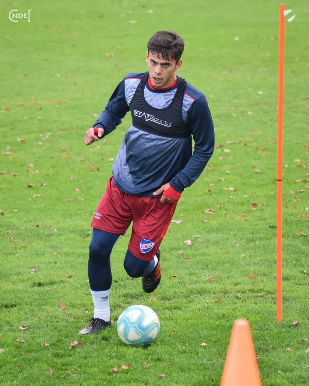 La entrada en calor en la cancha se realiza en un espacio definido por dos conos. El campo se divide en partes con cintas blancas, para que los futbolistas se muevan manteniendo las distancias físicas. Los ejercicios con balón son individuales, salvo los goleros que en estos primeros días no lo pueden utilizar y por eso son los que se sienten más “raros” entrenando. Los jugadores de campo eluden estacas clavadas en el piso y le dan pases a los rebotadores, maderas exclusivas de la nueva normalidad, ya que en esta etapa no se pueden pasar la pelota entre ellos.