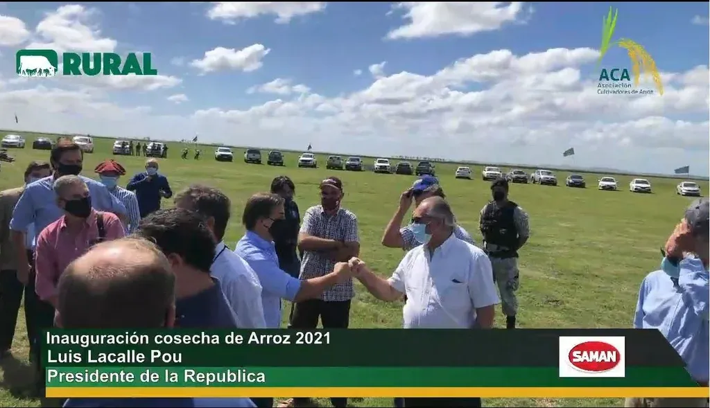El presidente de la República, Luis Lacalle Pou, participó de la inauguración de la cosecha de arroz de la zafra 2020/21 y en ese marco se comprometió a cumplir con los pedidos del presidente de la Asociación Cultivadores de Arroz (ACA), Alfredo Lago, que incluyen mejoras en la logística del transporte, en las tarifas de UTE, en la competitividad del sector y una adecuación en las tasas del Fondo Arrocero a la realidad del mercado.