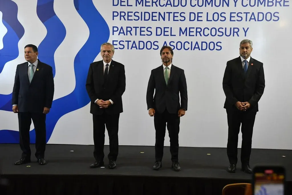 Si bien Fernández y Lacalle Pou se robaron las miradas, Mario Abdo Benítez y Hamilton Mourao también fueron críticos con la postura uruguaya.