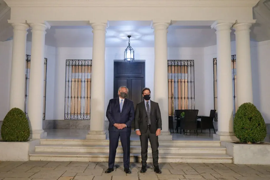 Era el primer encuentro luego del tenso cruce en la cumbre del Mercosur de marzo. El presidente Luis Lacalle Pou había dicho que el bloque regional se había convertido en un “lastre” y su par argentino Alberto Fernández le respondió que tomara “otro barco” si esa era su visión.