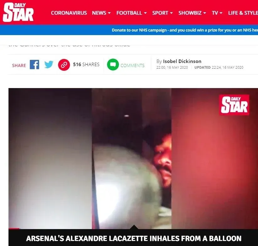 Arsenal aseguró este domingo que se toma "en serio" las informaciones de prensa sobre que su atacante francés Alexandre Lacazette inhaló protóxido de azoto con un globo, un "asunto privado que será tratado internamente", según un portavoz del club londinense de fútbol.