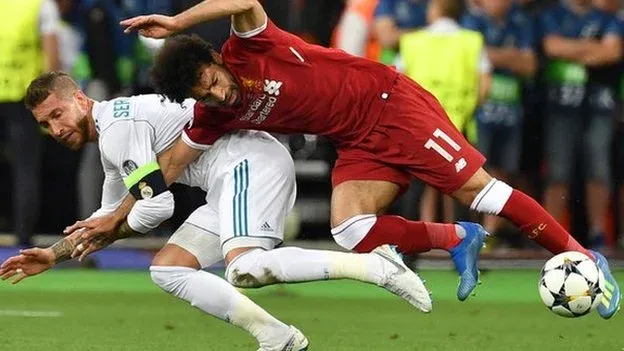 En la final de la Champions 2018 lesionó así a Mohamed Salah Acá hay un catálogo de algunas de sus patadas más famosas, una de las cuales incluye a Luis Suárez en un clásico contra Barcelona.