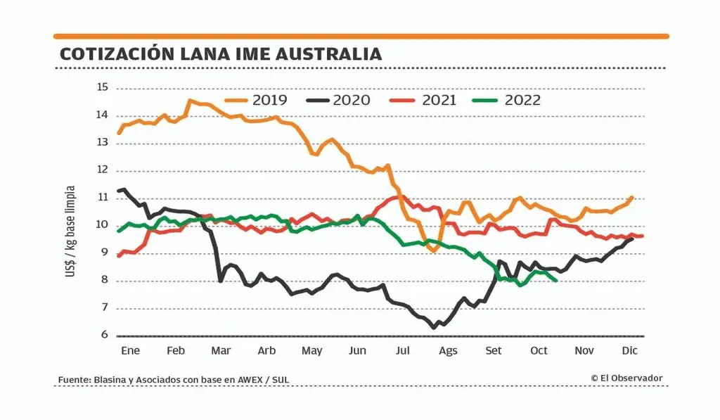 23% bajó el indicador lanero IME desde el pico de precio de 2022 en junio, cayendo desde US$ 10,39 a US$ 8,03 por kilo.
