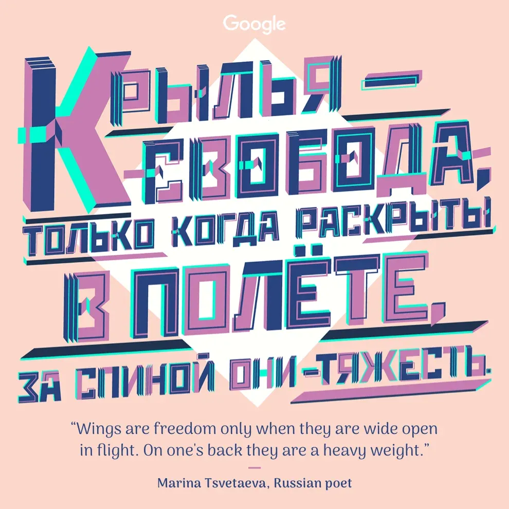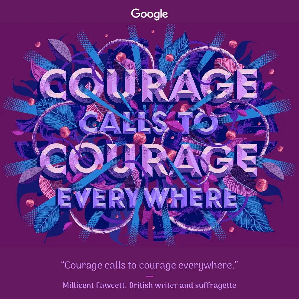 Las imágenes, diseñadas por artistas de todo el mundo, ilustran 13 frases de mujeres pioneras internacionales: la artista mexicana Frida Kahlo, la boxeadora Mary Kom, la poeta rusa Marina Tsvetaeva, la escritora alemana Emma Herwegh, la arquitecta iraquí Zara Hadid, la escritora nigeriana Chimamanda Adichie, la astronauta estadounidense Mae Jemison, la escritora británica Millicent Fawcett, la novelista brasileña Clarice Lispector, la artista japonesa Yoko Ono, la novelista francesa George Sand, la escritora China Sanmao y la diplomática india Beno Zephine.