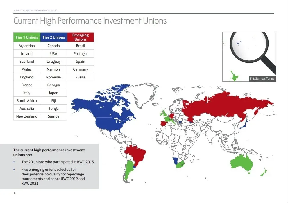 Solo en 2019, World Rugby invirtió US$ 5,8 millones en torneos para los países del Tier2, mientras que los fondos anuales para los Tier 2 aumentaron a US$ 8,5 millones anuales entre 2017 y 2019. Eso permitió que todos los países en desarrollo tuvieran más recursos para hacer una preparación de primer nivel mundial.