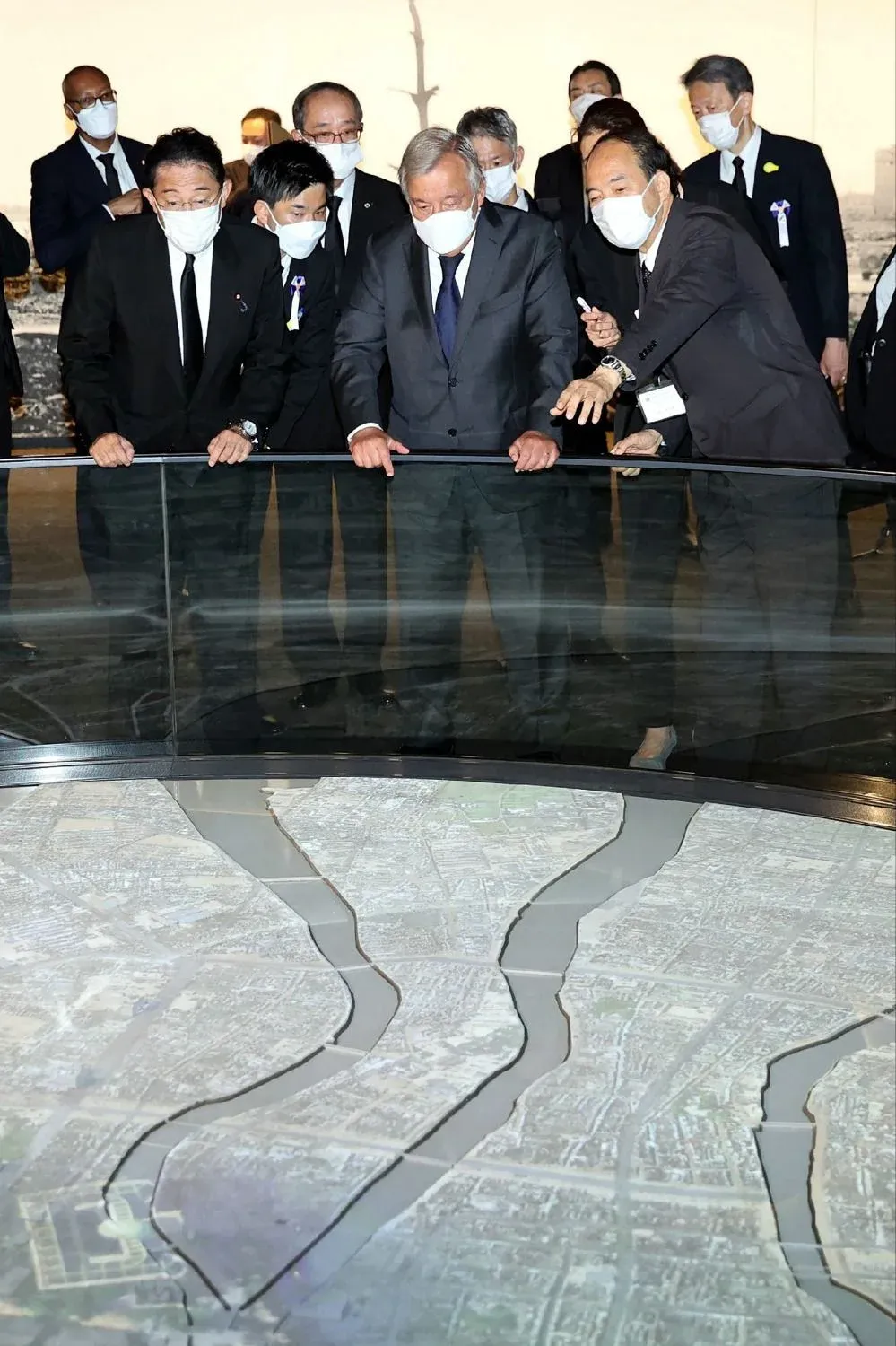 Guterres estuvo junto al primer ministro japonés, Fumio Kishida, el alcalde de Hiroshima, Kazumi Matsui, representantes de 98 países e instituciones. También estaban los "hibakusha" o supervivientes de la acción nuclear.