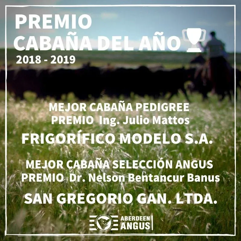 Desde 2009 la Sociedad de Criadores de Aberdeen Angus del Uruguay (Scaau) reconoce a la cabaña del año, un premio simbólico que otorga prestigio a los establecimientos y los posiciona mejor respecto al resto: en el período 2018-2019 las cabañas del año fueron Frigorífico Modelo, de Tacuarembó, y San Gregorio Ganadera, de Soriano.