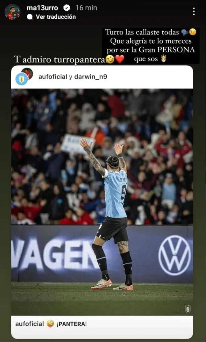 Alan Matturro, el zaguero campeón del mundo con la selección uruguaya, le dedicó un divertido mensaje a Darwin Núñez luego de su gran actuación en el triunfo ante Brasil por 2-0 este martes en el Estadio Centenario, por las Eliminatorias 2026.