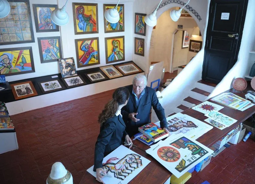 “Pintar en tránsito es mi estilo. Poner mi oído contra la tierra para escuchar el corazón de los pueblos y que sus latidos se impriman en mis telas”, decía el artista en Arte y Aventura. Las épocas en las que sus cuadros y sus dibujos fueron moneda de cambio en un trueque para pagar hoteles por el mundo.