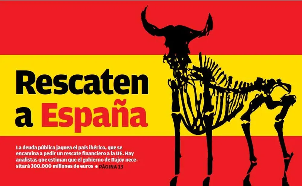 La deuda pública jaquea al gobierno español, que se encamina a pedir un rescate financiero a la Unión Europea. Hay analistas que estiman que el gobierno de Mariano Rajoy necesitará 300 mil millones de euros.