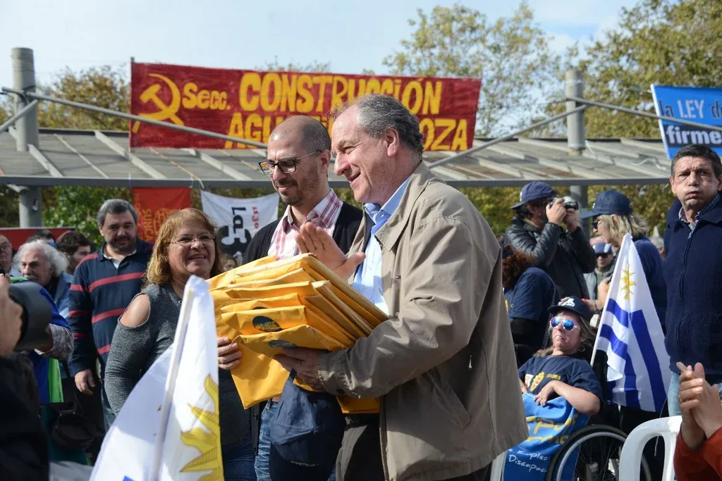 El ministro Ernesto Murro y el prosecretario de Presidencia Juan Andrés Roballo recibieron sobres con firmas a favor de la ley