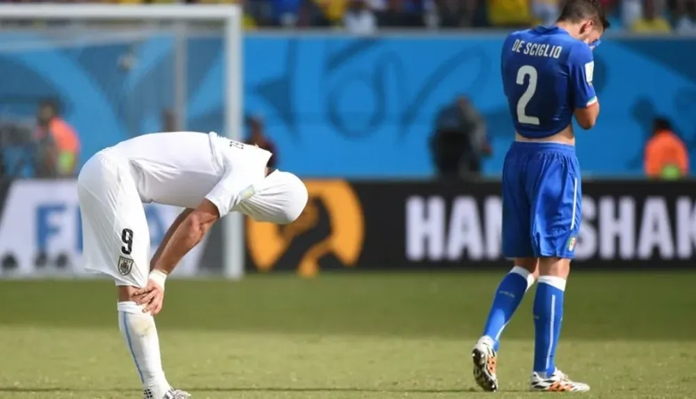Los artículos que puede usar la FIFA en este caso son el c) y el d: conducta antideportiva o “asaltos”. La FIFA no menciona, obviamente, a una actitud tan extraordinaria como una mordida, y menciona “codazos, puñetazos, patadas, etc”. El “etc” abre una ventana para que actúe la FIFA, pero la defensa de Uruguay también puede ir por ese lado: no puede ser sancionado por algo que no esté previsto.