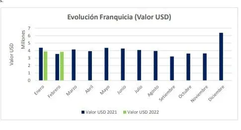 El valor total de las compras en febrero fue de US$ 3,83 millones, levemente por encima de los US$ 3,5 millones de igual mes de 2021.