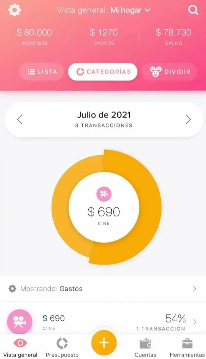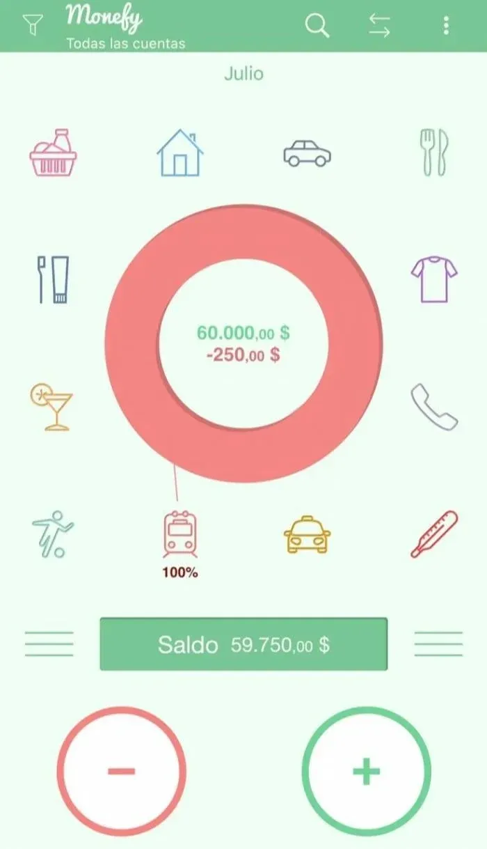 Como ventaja, es muy intuitiva y permite personalizar varios aspectos, como la moneda con la cual registrar los movimientos y, además, va mostrando de forma inmediata qué porcentaje de los gastos se lleva cada categoría.