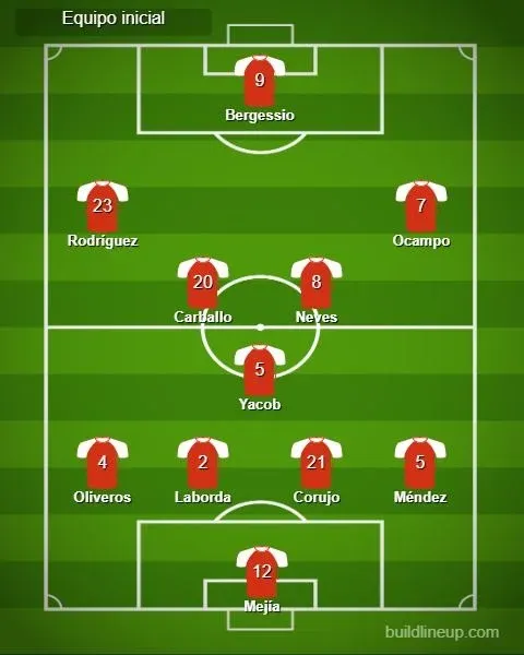 La alineación que presentó Nacional fue la misma del partido anterior, frente a Rentistas. Con Mejía en el arco; Méndez, Corujo, Laborda y Oliveros en la zaga; Yacob, Neves y Carballo en el mediocampo, Ocampo, Bergessio y Rodríguez en el ataque.
