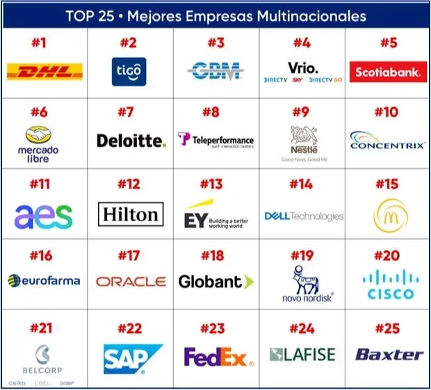 La multinacional mejor valorada según GPTW fue DHL Express. La compañía internacional de logística opera en 17 países de Latinoamérica además de Uruguay. El segundo puesto fue para Millicom, una compañía de telecomunicaciones. Le siguieron la tecnológica GBM, la compañía en telecomunicaciones Vrio (anteriormente DirecTV Latin America LLC) y el banco Scotiabank, que completó el top cinco de esta categoría.