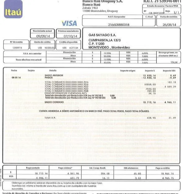 Facturas de Gas Sayago que presentó Ancap ante la Justicia.