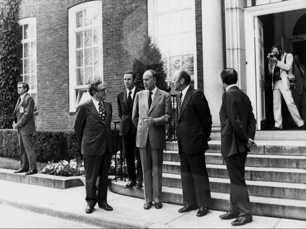 Agosto de 1975, Kissinger acompañó al presidente Gerald Ford a una reunión clave sobre seguridad en Helsinki, de la que también participó el presidente francés Valery Giscaard D’Estaing.