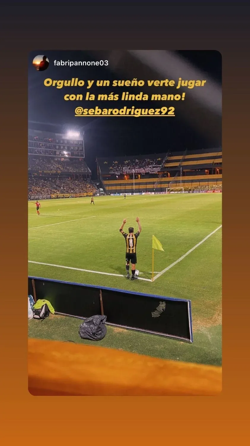 "Tremendo debut. Un sueño verte debutar con la más linda", le escribió @gusa.arambillet y Rodríguez publicó la historia en su cuenta (@sebastodriguez92).