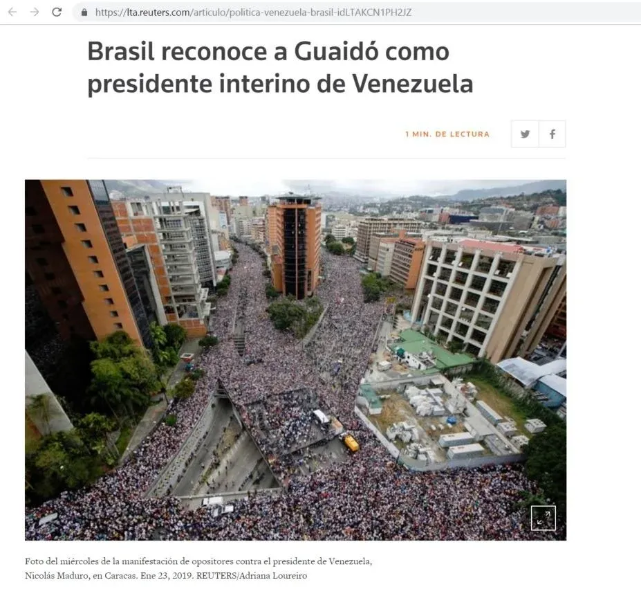"Designado jefe del Congreso opositor de Venezuela el 5 de enero, Guaidó en menos de un mes llenó el vacío en el liderazgo de la desarticulada oposición y convenció a cientos de miles de venezolanos de volver a las calles", reportó Reuters.