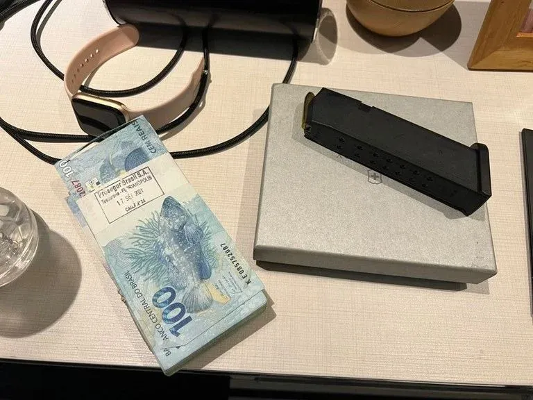 En otras fotos el organismo mostró que se incautaron cientos de reales, varios celulares, una computadora y un cargador de una pistola, con balas.