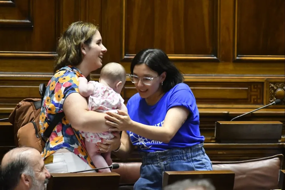 Otra legisladora que llevó a su bebé al cierre fue la diputada suplente del Partido Socialista, Macarena Sierra, que en octubre fue noticia por tener que amamantar en plena sesión a su hija, ante la dificultad para acceder a una sala de lactancia en el Parlamento.
