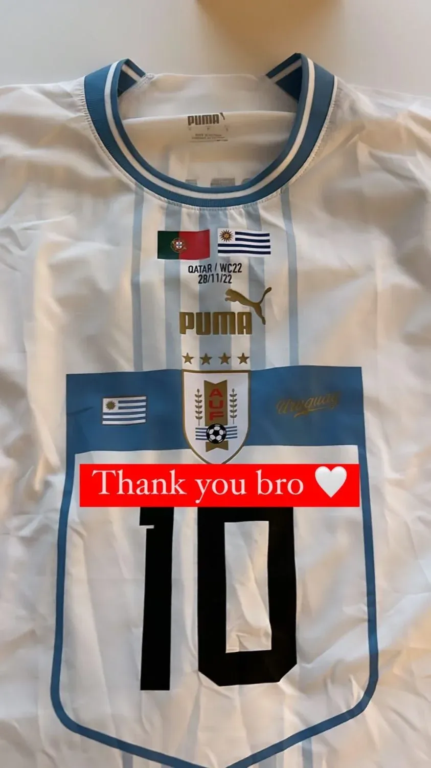 El regalo de Giorgian De Arrascaeta a su anfitrión: la camiseta con la que debutó en el Mundial Qatar 2022 cuando Uruguay cayó ante Portugal "Gracias, hermano", le respondió en inglés el emiratí.