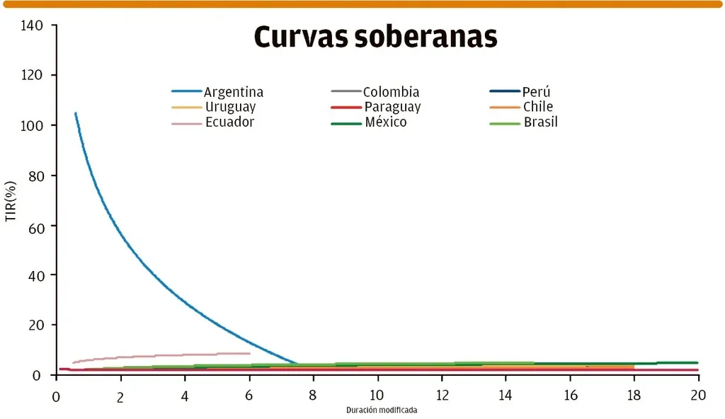 En el gráfico se representan las curvas de rendimiento de bonos soberanos de varios países de América Latina y Estados Unidos.