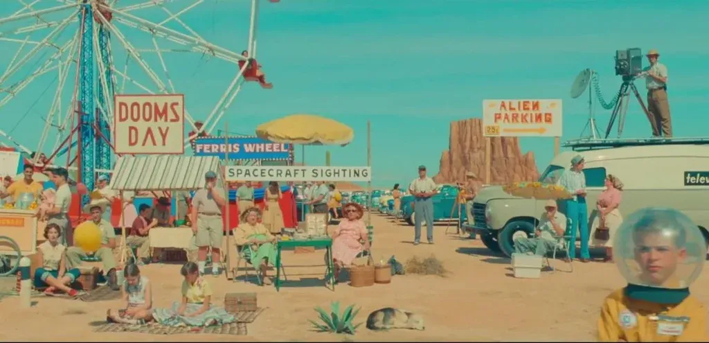 Asteroid City. Wes Anderson siempre me cuesta, pero una vez que lo empiezo a ver suele fascinarme con sus relatos, a veces mágicos y a veces dolorosamente reales, con su estética de pasteles engañosos que esconden historias emotivas. Esta es una película de esas que se definen como “coming of age”, en un desierto inventado en Estados Unidos en el que hay un campamento de verano de los años 50.