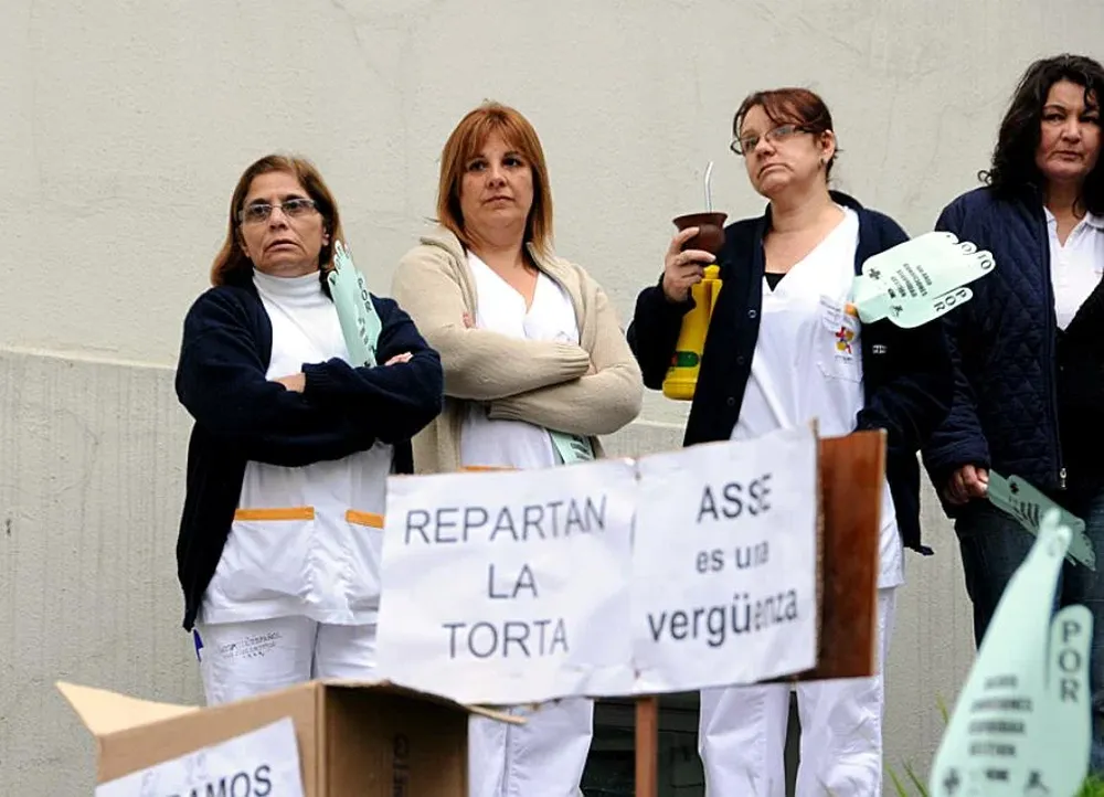 A eso de las 9 llegó la gerente asistencial de ASSE, Alicia Ferreira, acompañada por una abogada de ASSE. Mientras se dirigían a la puerta sin hacer comentarios, Pisciotano tomó el micrófono: “Vienen a explicar que es ilegal luchar por salario, ¡que vayan a gestionar!”.