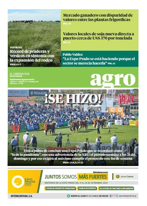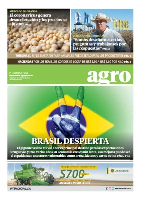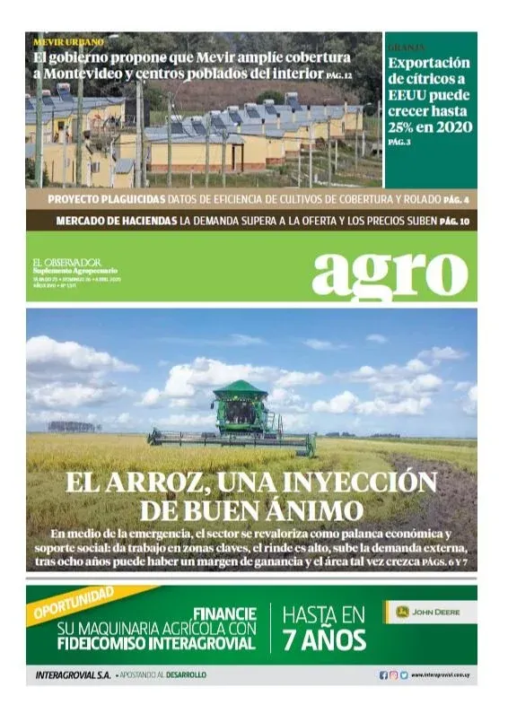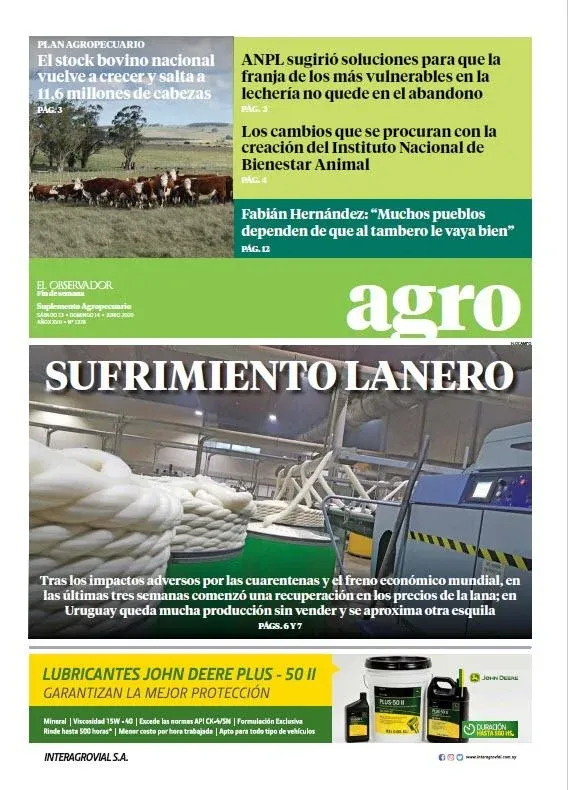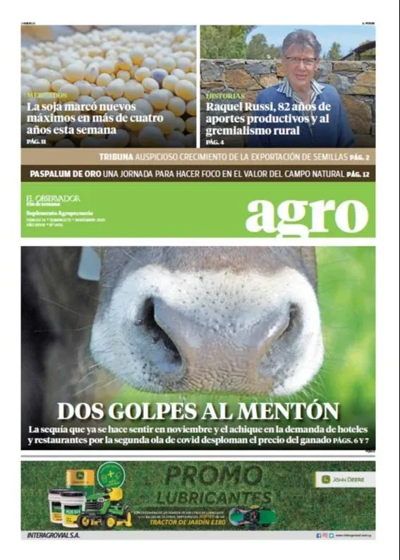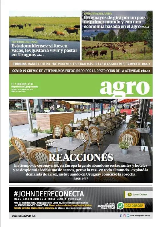 A pocas horas de haber concluido un nuevo año, les presentamos en esta nota una selección de algunas de las mejores tapas del suplemento Agro de El Observador durante 2020, un año signado principalmente por la expansión a nivel mundial de la pandemia de covid-19.