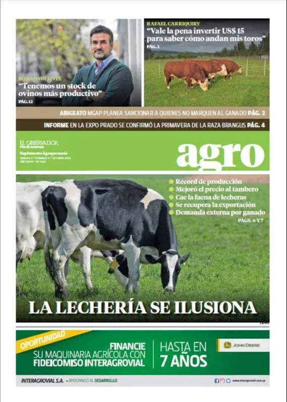 Semana a semana desde enero a diciembre se fueron sucediendo las novedades en el sector de los agronegocios, acumulándose en cada suplemento publicado junto a El Observador Fin de Semana la Tribuna a cargo de los columnistas del equipo de Agro; el informe a cargo del equipo de comunicadores de la consultora Blasina y Asociados; la entrevista de contratapa al protagonista de la semana; los análisis de mercados de haciendas, granos y lanas; la actividad comercial en la sección Campo & Negocios; y los acontecimientos ocurridos en el exterior del país en la página de información internacional, entre otros contenidos.